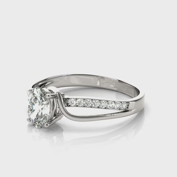 Solitaire Oval and Twisted Channel Set Ring